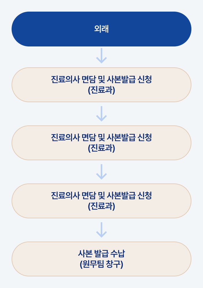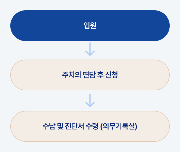 ※ 입원 중 진단서 발행 본인은 신분증 지참 + 직계가족은 가족관계증명서(등본)+직계가족신분증 지참 필요