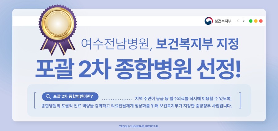여수전남병원은 포괄2차종합병원 필수 조건인 3가지를 모두 충족하여 선정되었습니다.